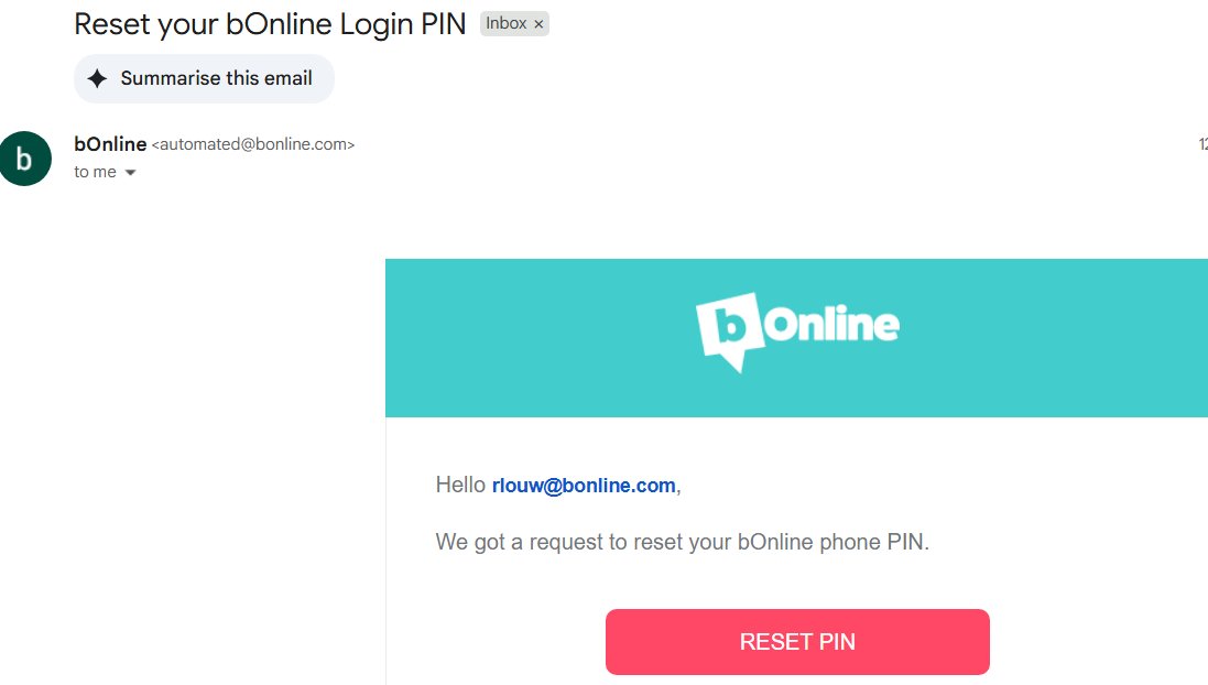 Another way to reset your PIN is to do it via the MYbOnline portal. Carry out the following steps: