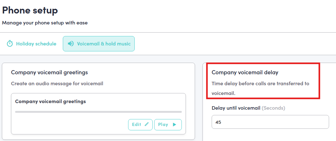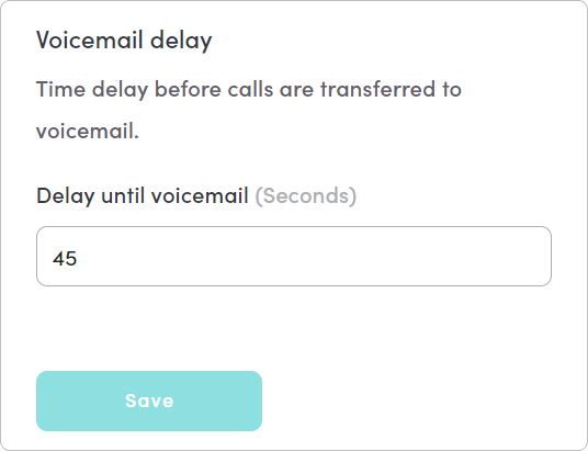 Set how long you would like the delay to last before the caller is transferred to voicemail.